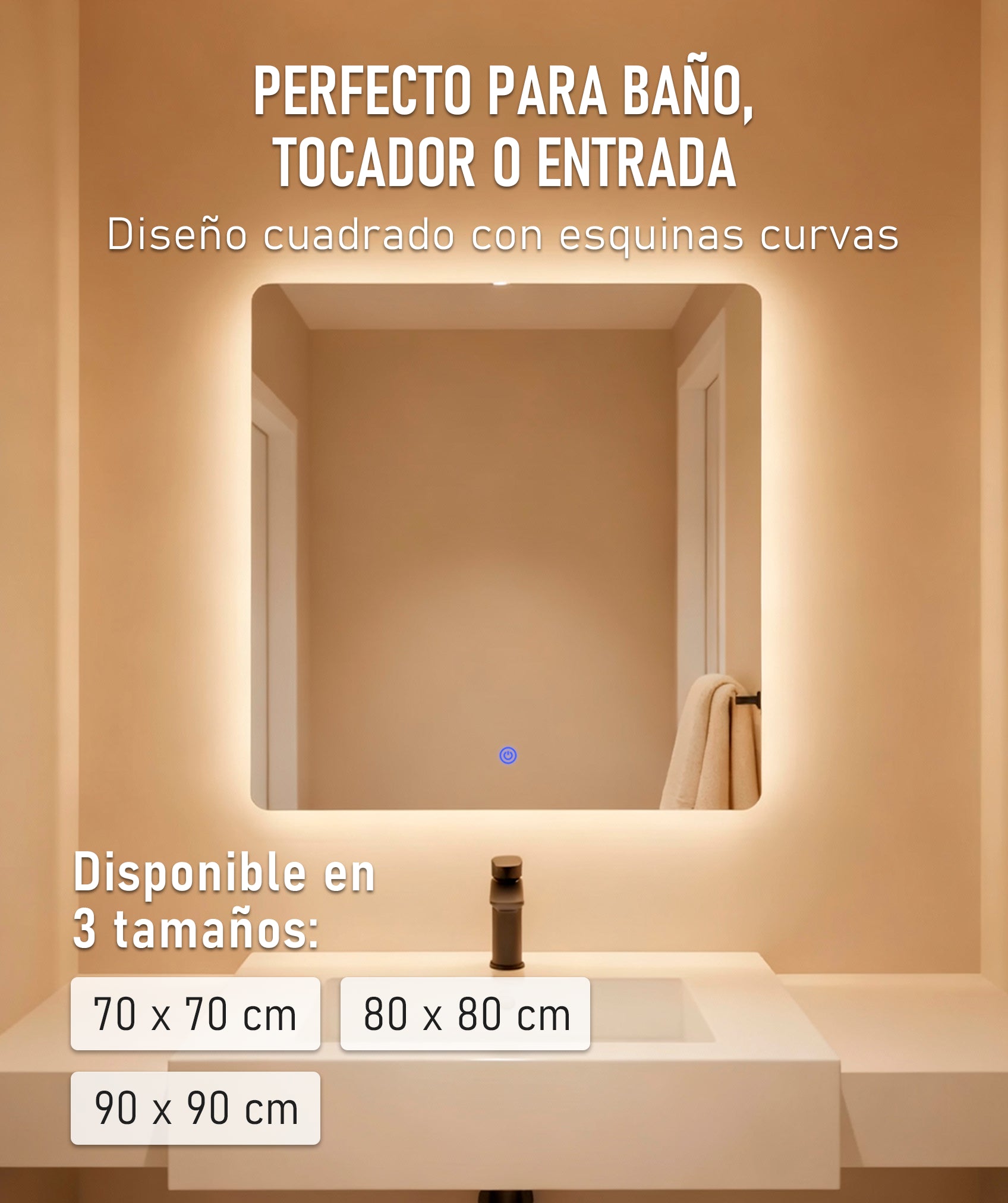 - 70 x 70 cm ideal para baños compactos.
