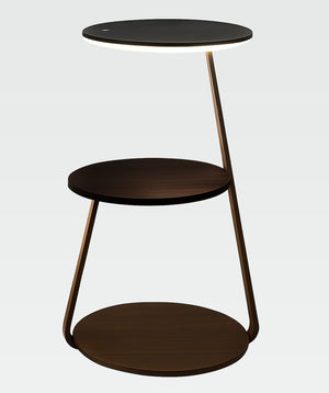 Con 61 cm de altura y 3 estantes (diámetro: 34 cm, 32 cm y 35 cm), esta mesa auxiliar ofrece un equilibrio entre estilo y funcionalidad. Sus acabados en madera con estructura de hierro añaden un toque moderno y resistente, proporcionando suficiente espacio para libros, dispositivos y decoración. Además, soporta hasta 5 kg de peso.